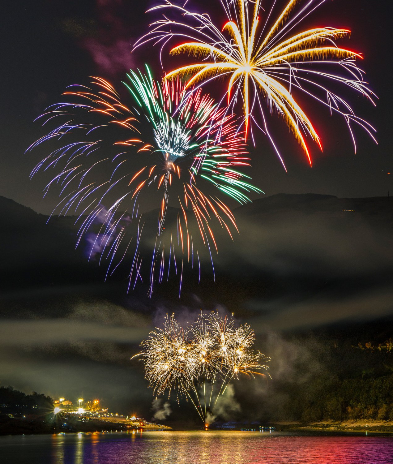 Fireworks on the Fiastra Lake, in the National Park of Sibillini Mountains (Marche Region – ITALY)